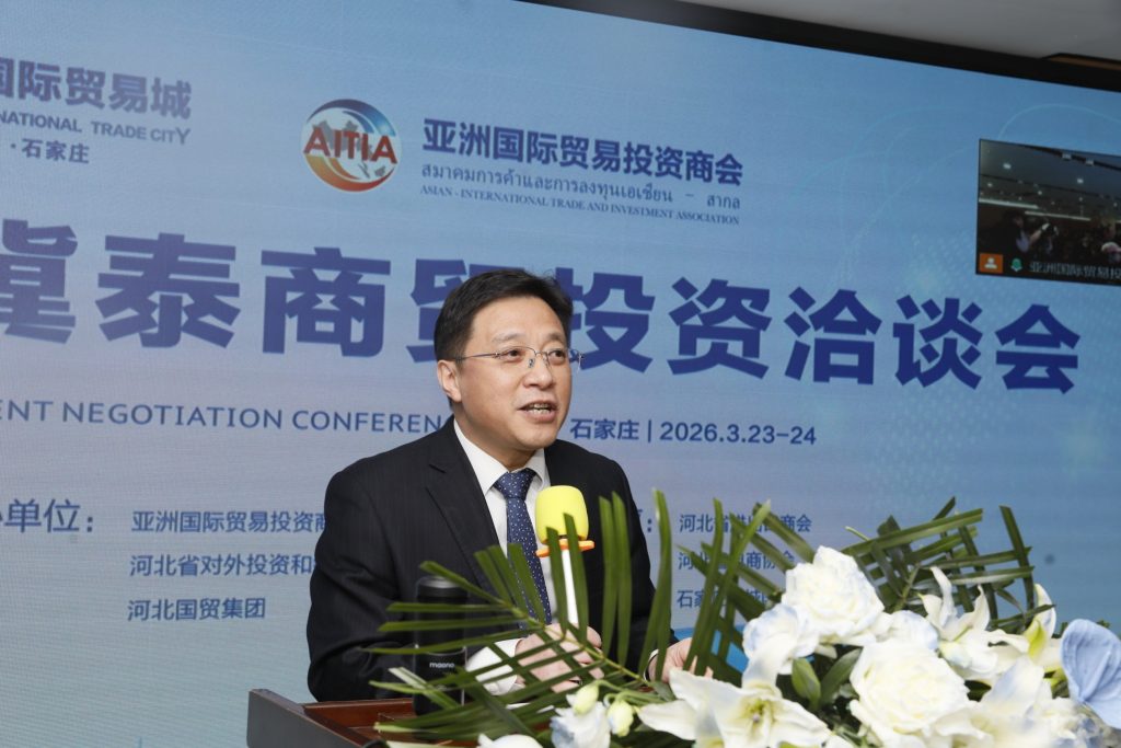 Shijiazhuang, PR China (March 23, 2026) – The Asian-International Trade and Investment Association (AITIA), in collaboration with the Hebei Provincial Department of Commerce, the Hebei International Economic Cooperation and Investment Association, and the Hebei International Trade Group, hosted the “ASEAN Market Analysis Seminar” at the Lecheng International Trade Center in Shijiazhuang. The event aimed to provide entrepreneurs in Hebei province with an in-depth understanding of Thailand’s potential in trade, investment policies, factory establishment, and e-commerce opportunities.