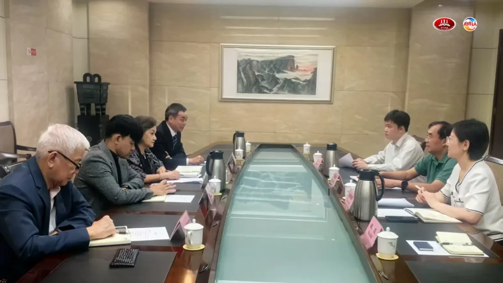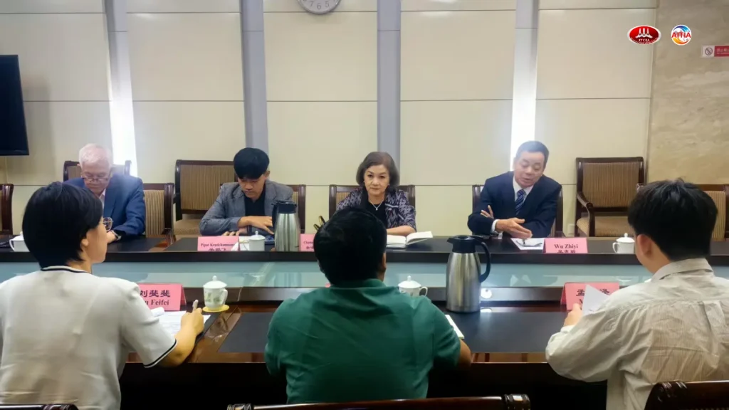 วันที่ 25 มิถุนายน 2568 คณะผู้แทนจากสมาคมการค้าและการลงทุนเอเชียน-สากล นำโดยนางชไมพร เจือเจริญ นายกกิตติมศักดิ์ นายเอกวุธ เจือเจริญ ที่ปรึกษากิตติมศักดิ์ และนายอู๋ จื้ออี้ นายกกิตติมศักดิ์ ได้เข้าพบผู้แทนกรมพาณิชย์มณฑลซานตง โดยมีคุณชิว เทียนปิน หัวหน้าผู้แทนสำนักงานการค้าและเศรษฐกิจของรัฐบาลมณฑลซานตงประจำเอเชียตะวันออกเฉียงใต้ คุณหลิว เฟยเฟย รองผู้อำนวยการกองการค้าบริการ และคุณเมิ่ง เจ๋อ เจ้าหน้าที่ระดับสาม กองการค้าบริการ ให้การต้อนรับและร่วมพูดคุยหารืออย่างอบอุ่น